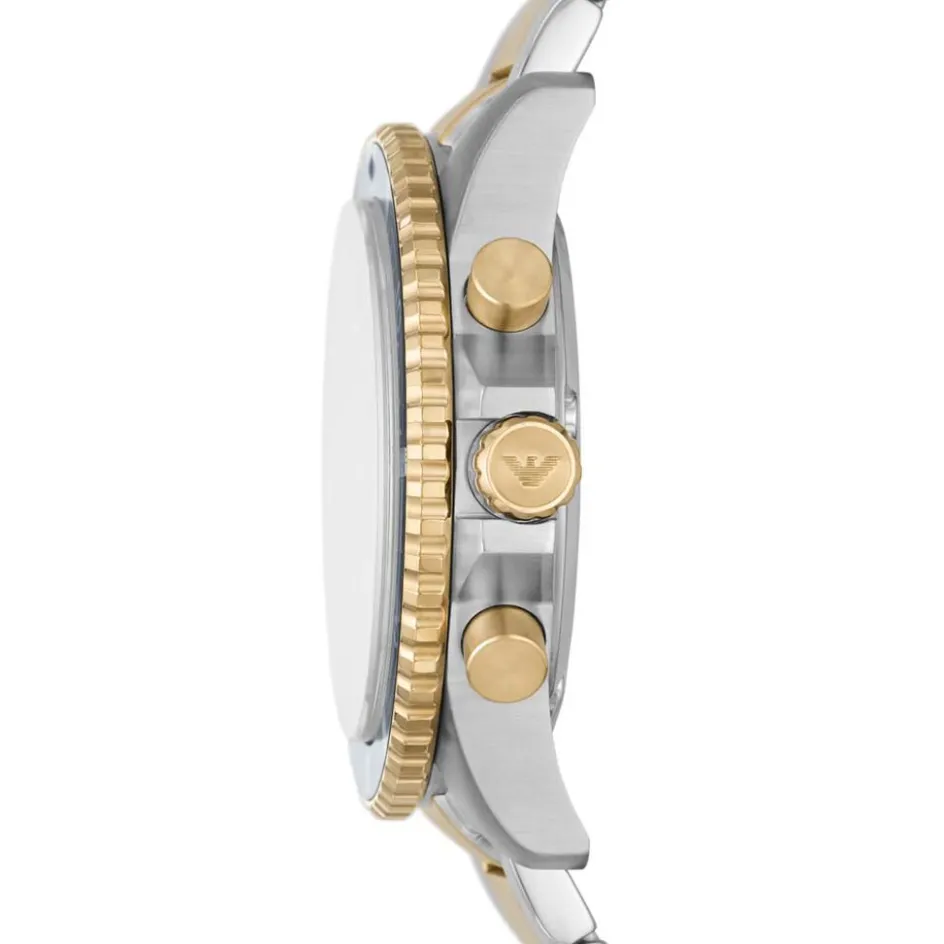 Montre Emporio Armani Acier Argente Et Dore Ronde Chrono 43mm Fond Bleu Lunette Acier Bleu Bracelet Acier Argente / Dore 10atm Ar11362