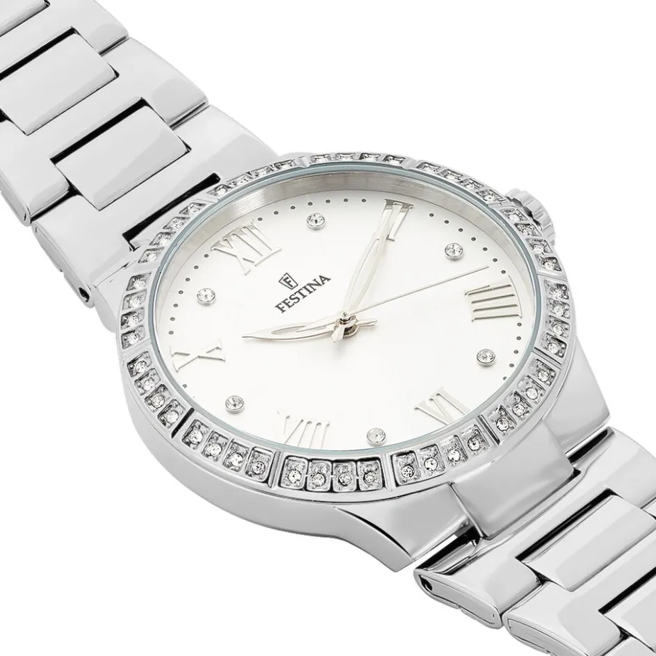 Montre Festina Boyfriend Acier Blanc Ronde Quartz 37mm Fond Blanc Bracelet Acier Blanc F167191