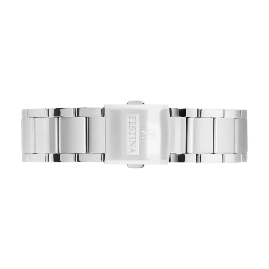 Montre Festina Timeless Chronograph Acier Blanc Ronde Quartz Chronographe 43mm Fond Bleu Bracelet Acier Blanc F203437