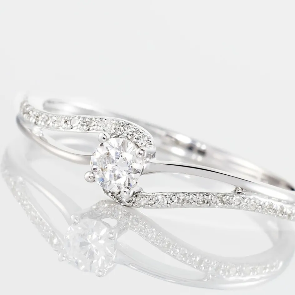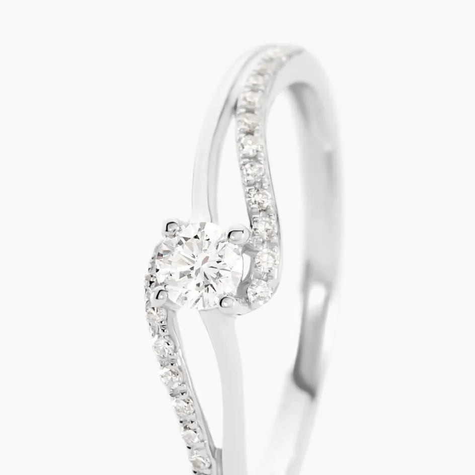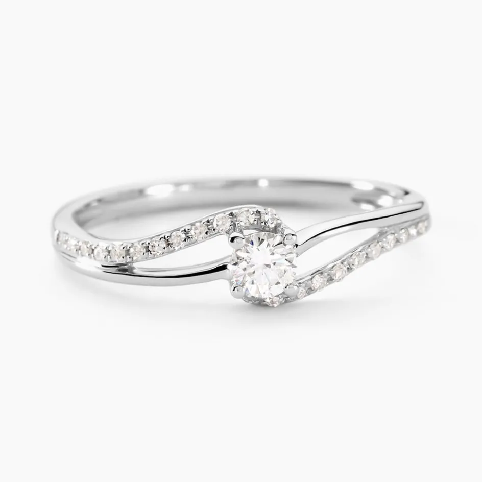 Bague Or Blanc 375/1000 Diamants Central Et Corps Bague Accompagne 0.11cts