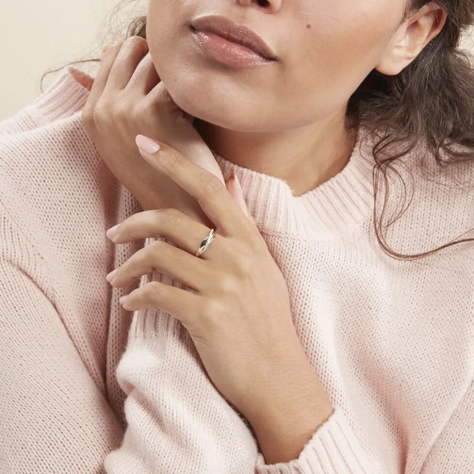 Bague Or Jaune 375/1000 Forme Vagues Entrelacees Pavage Diamants