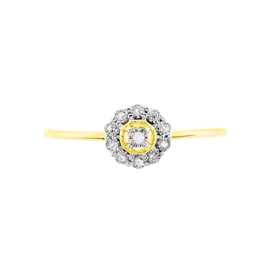 Bague Or Jaune 375/1000 Entourage Diamants Forme Fleur