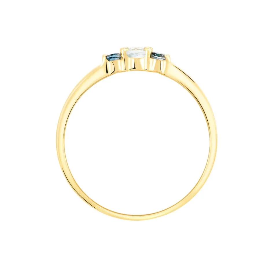 Bague Or Jaune 375/1000 Topaze Centrale + Topaze Blue London