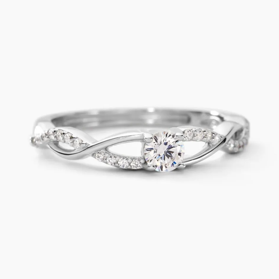 Bague Argent Blanc 925/1000 Oxyde De Zirconium Central Serti Griffes Accompagne Oxydes De Zirconium