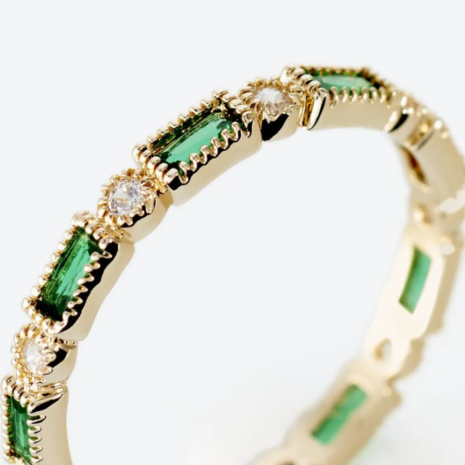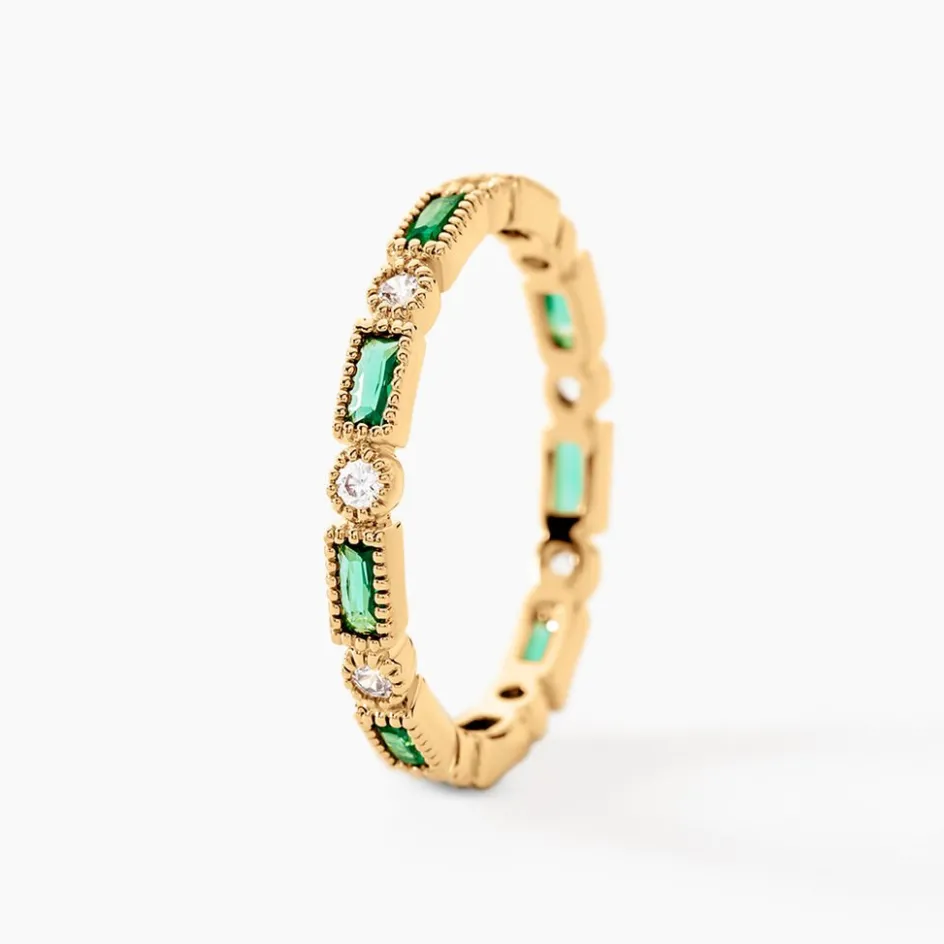 Bague Plaqué Or Oxydes De Zirconium Et Pierres Synthétiques Vertes