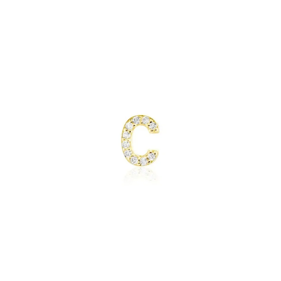 Boucle D’oreille Puce Unitaire Or Jaune 375/1000 Lettre C Oxydes De Zirconium
