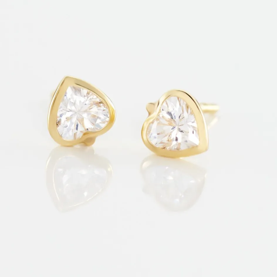 New Histoire d'Or Boucles D'oreilles Puces Daria Coeur Plein Or Jaune Oxyde De Zirconium