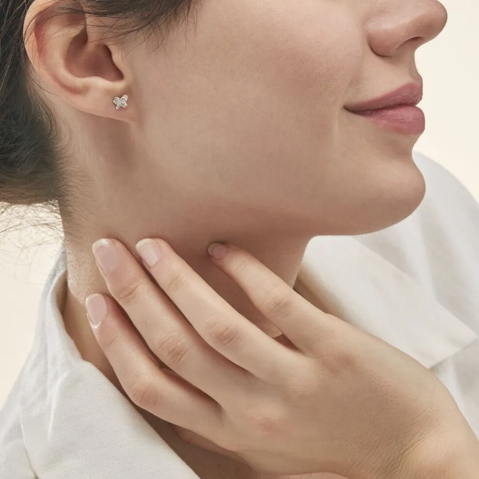 Boucles D’oreilles Puces Or Jaune 375/1000 Papillons Strass Fermoirs Vis
