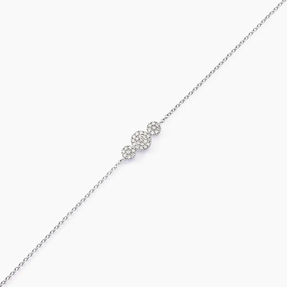 Bracelet Or Blanc 375/1000 Pastilles Pge Diamants 18.5cm