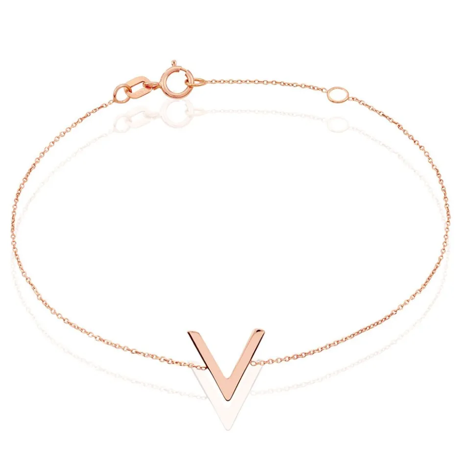 Bracelet Or Rose 375/1000 Forme V Maille Forcat 16+2cm