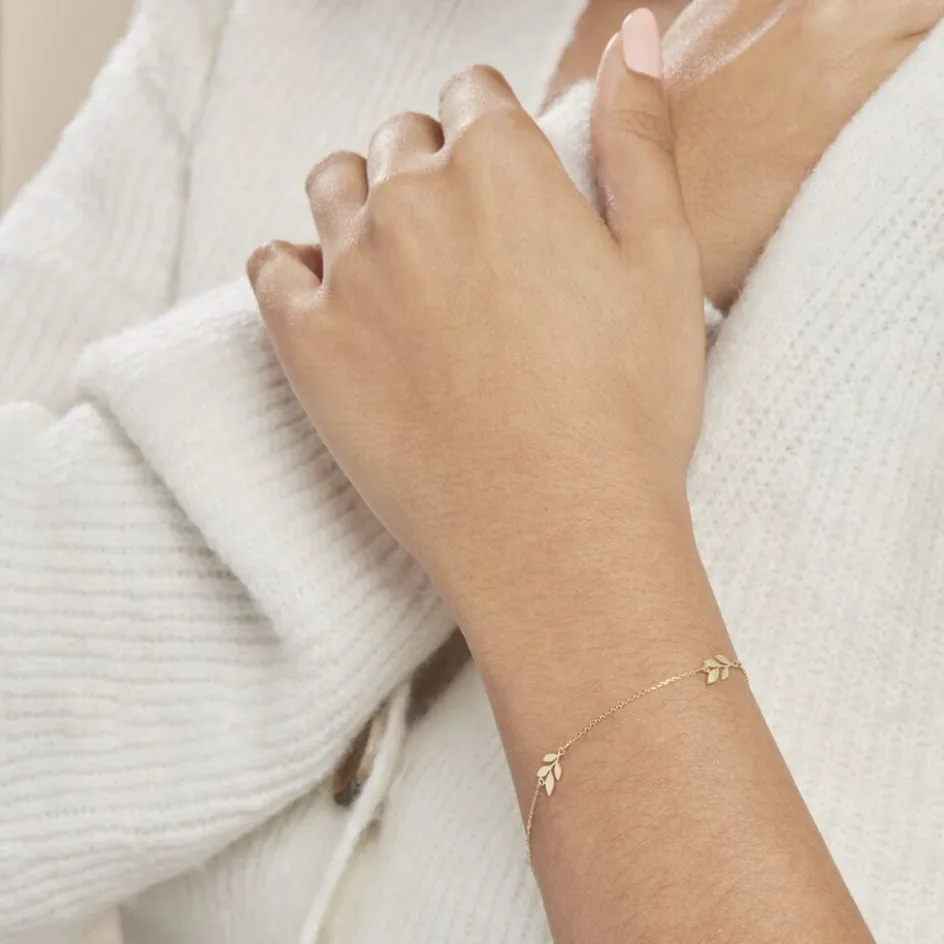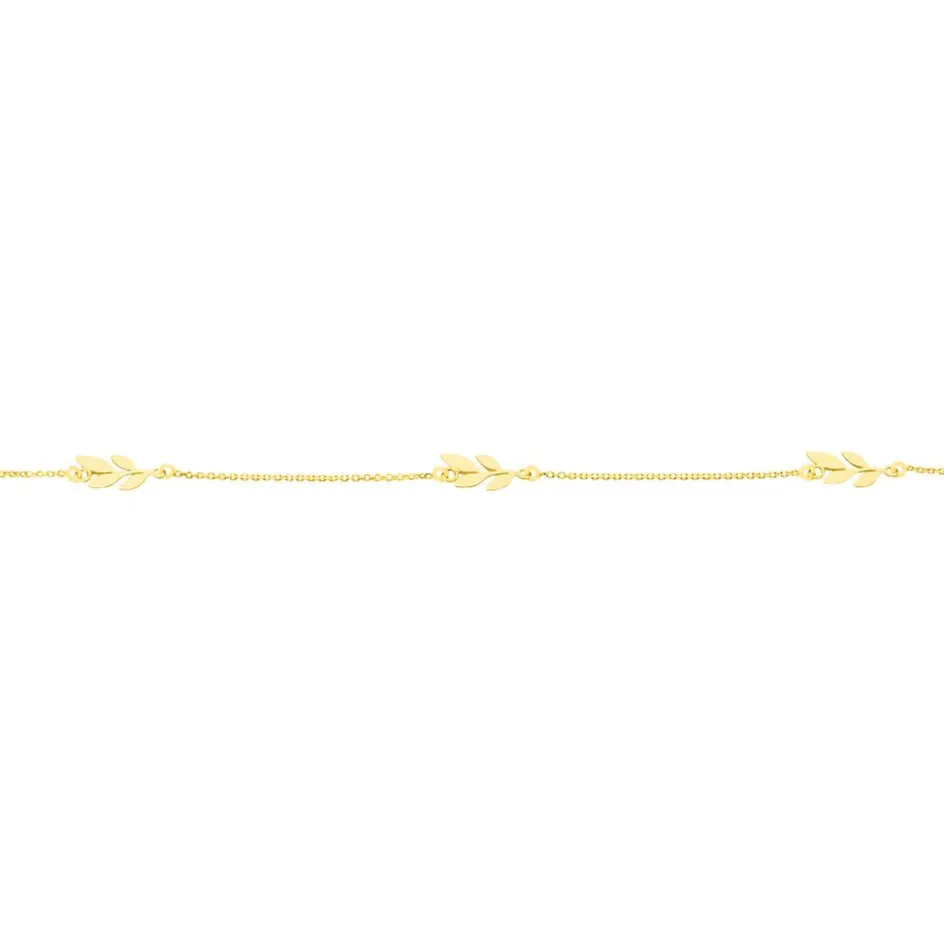 Bracelet Or Jaune 375/1000 Motif Feuille Maille Jaseron 18cm