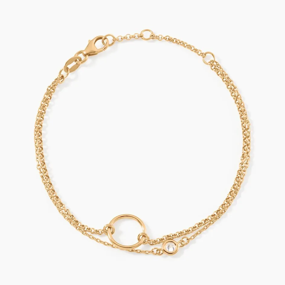 Bracelet Plaqué Or Jaune Cercle Et Oxyde De Zirconium Serti Clos Double Rang Mailles Jaseron Et Forçat 16+3cm