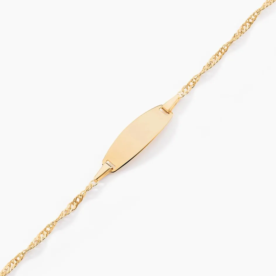 Bracelet Identite Bebe Or Jaune 375/1000 Plaque Ovale Maille Singapour 13.5cm