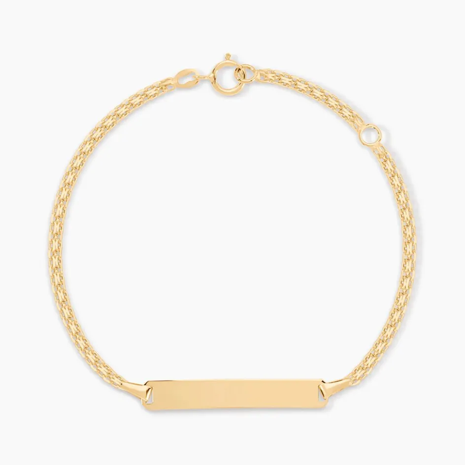 Bracelet Identite Bebe Or Jaune 375/1000 Plaque Rectangle Maille Bismark 11/13cm
