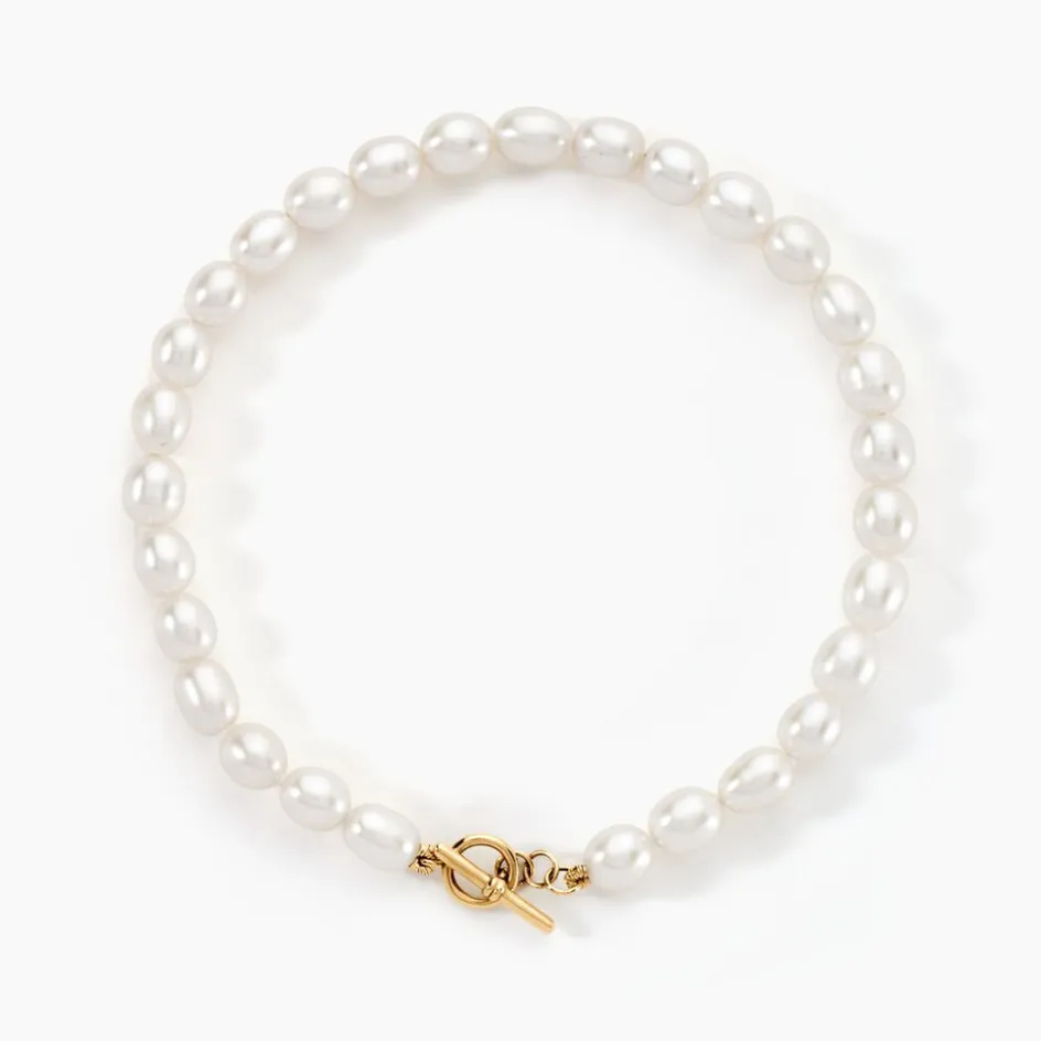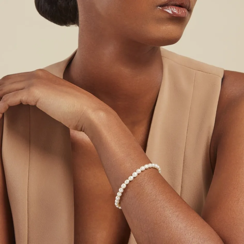 Bracelet Or Jaune 375/1000 Perles De Culture Blanches Ovales Fermoir En T 18cm