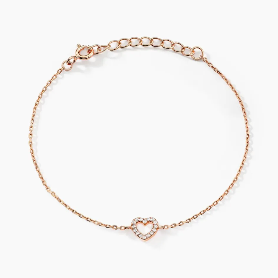 Bracelet Argent Rose 925/1000 C艙ur Penche Ajoure Pavage Oxydes De Zirconium 18.5cm