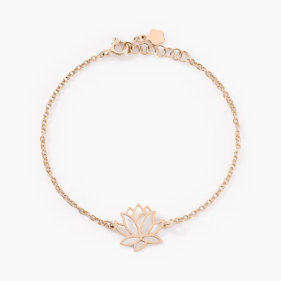 Bracelet Argent Rose 925/1000 Fleur De Lotus Maille Forcat 18cm