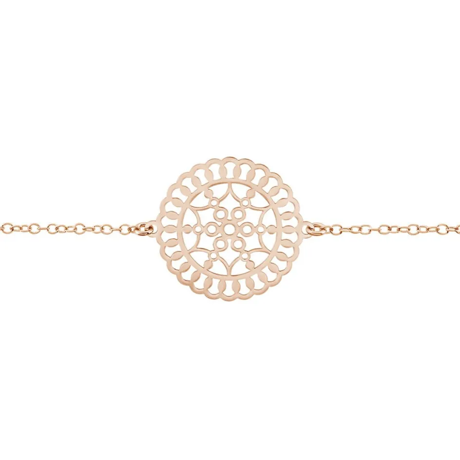 Bracelet Argent Rose 925/1000 Rosace Ajouree Maille Forcat 20cm