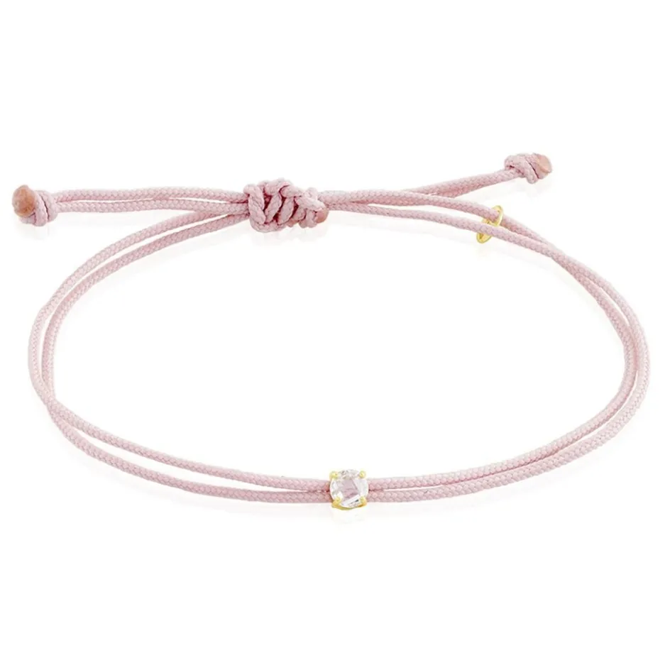 Bracelet Or Jaune 375/1000 Oxyde De Zirconium Cordon Ajustable Rose 14cm