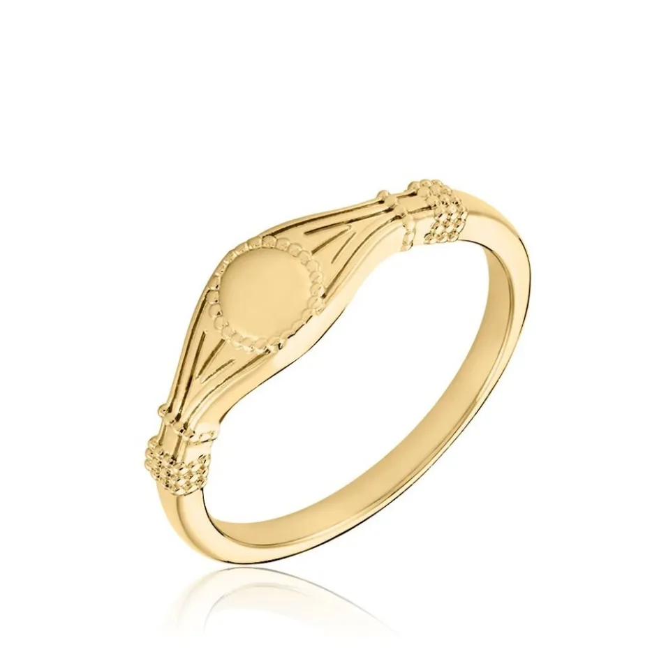 Chevalière Plaqué Or Jaune Plateau Ovale Corps De Bague Strié