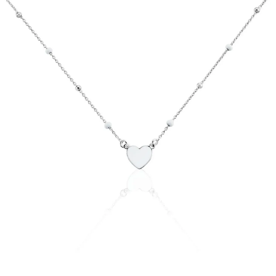 Collier Argent Blanc 925/1000 C艙ur Email Blanc Maille Jaseron 45cm