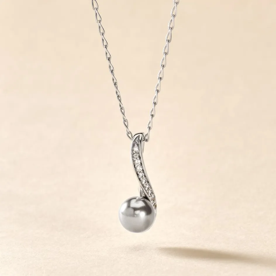Collier Argent Blanc 925/1000 Perle D’imitation Grise 8mm Oxydes De Zirconium 45cm