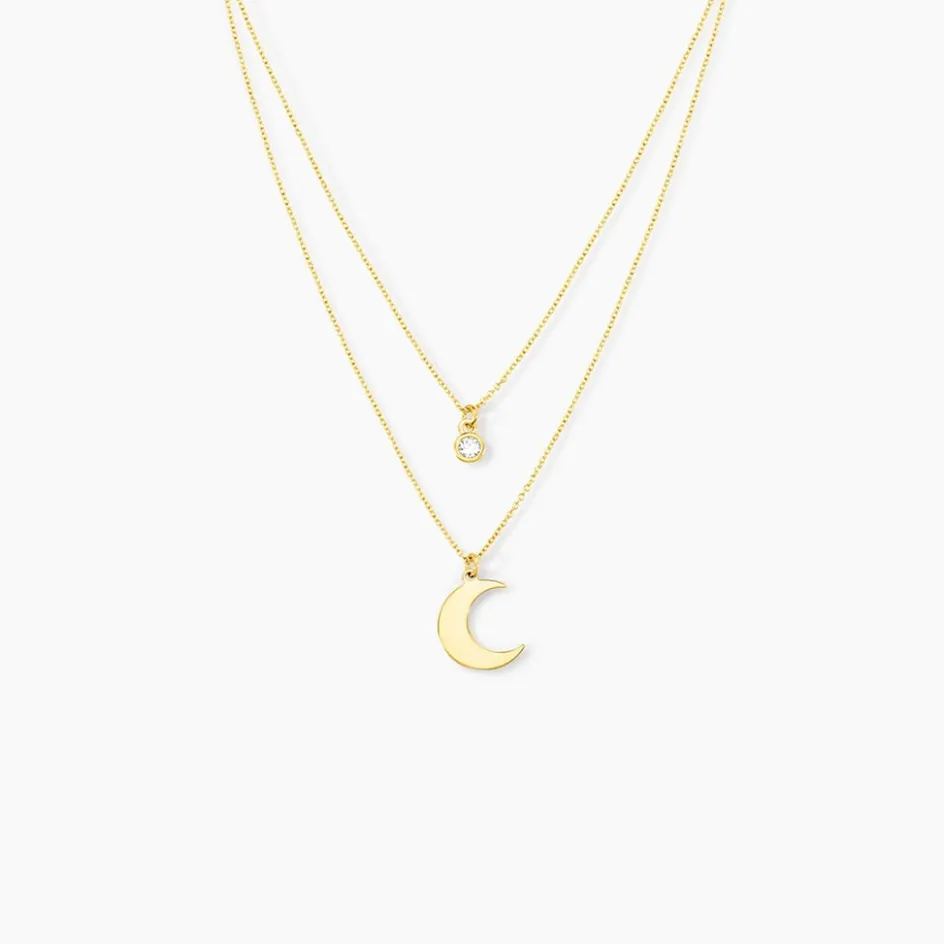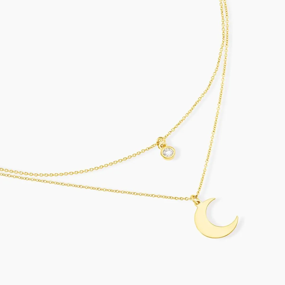 Collier Argent Jaune 925/1000 Lune Et Oxyde De Zirconium Double Mailles Forcat 41cm