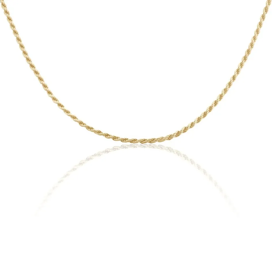 Collier Plaque Or Jaune Maille Corde 3mm 50cm