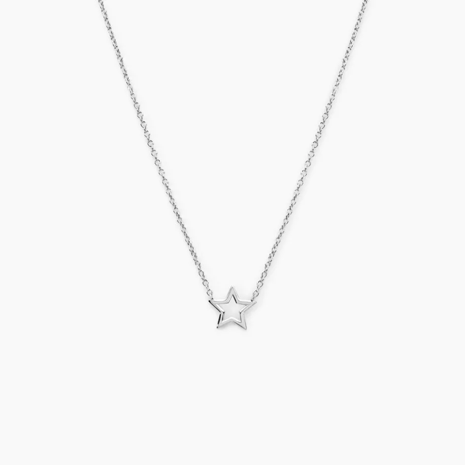 Collier Argent Blanc 925/1000 étoile Ajourée Maille Forçat 42+3cm