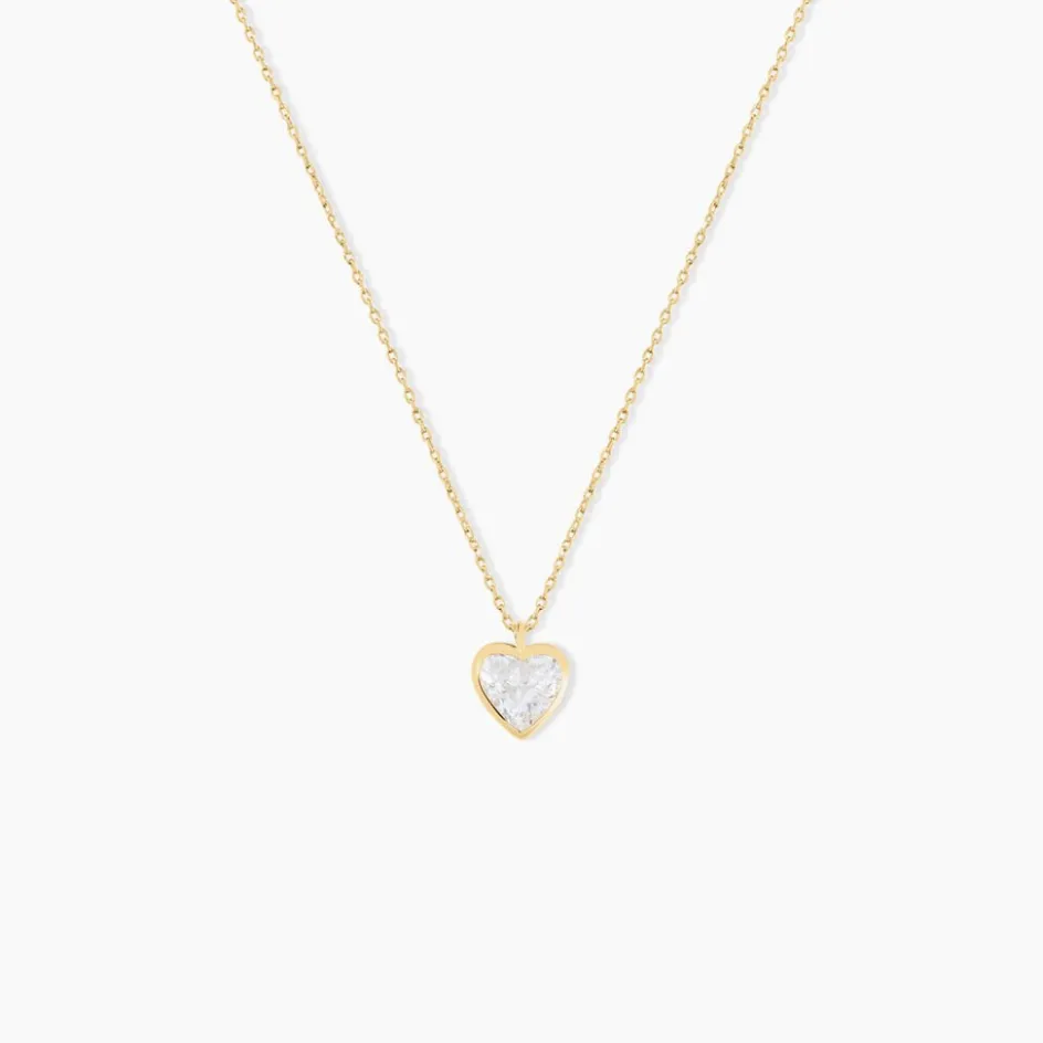 Collier Or Jaune 375/1000 Maille Jaseron Forme C艙ur Oxyde De Zirconium Serti Clos 40cm