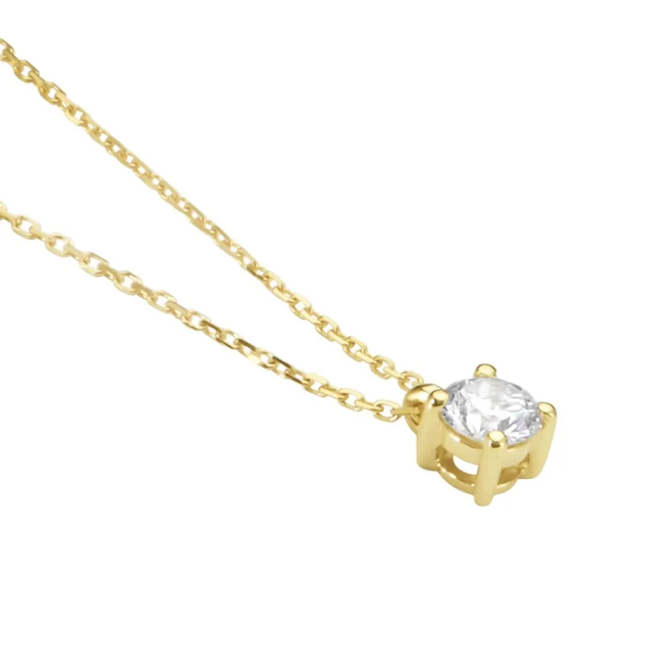 Collier Or Jaune 750/1000 Diamant 0.26cts Diamant Serti 4 Griffes Beliere Mobile Maille Forcat 40+2cm
