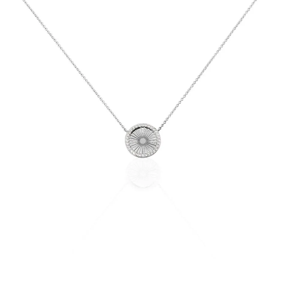 Collier Argent Blanc 925/1000 Soleil Ajoure Micro Setting Oxydes De Zirconium 45cm