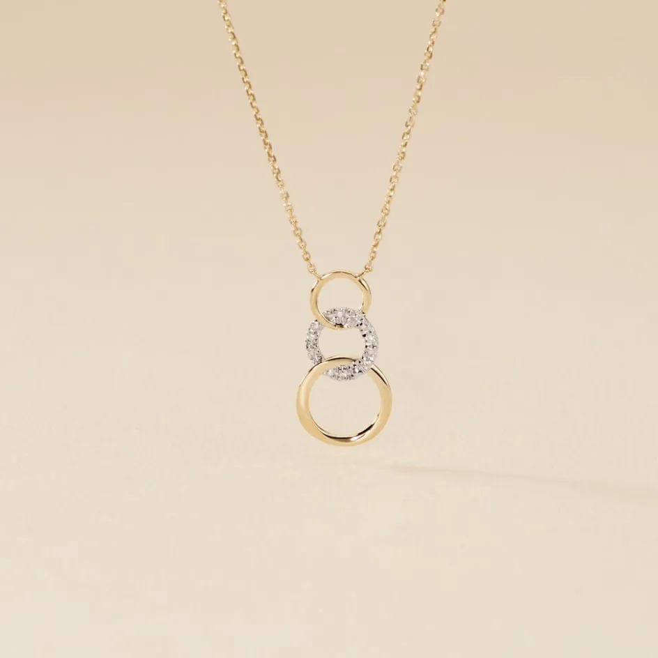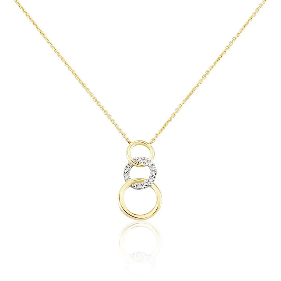 Collier Or Bicolore 375/1000 Cercles Multiples Diamants 40+2cm