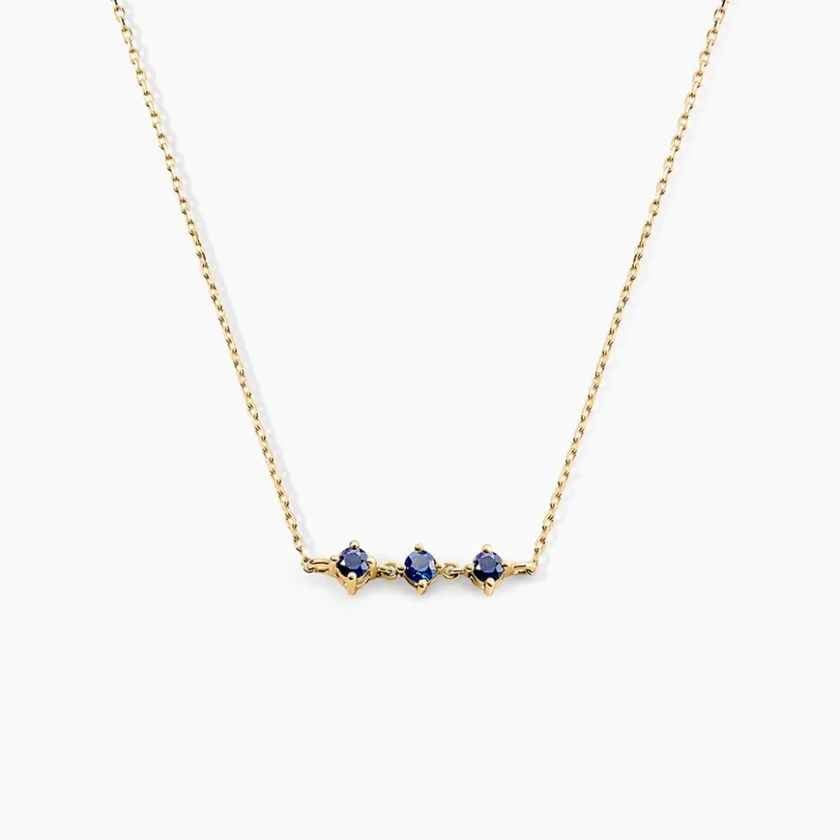 Collier Or Jaune 375/1000 Trilogie Saphir Ronds 0,13Cts Sertis Griffes Maille Forcat 42+3Cm