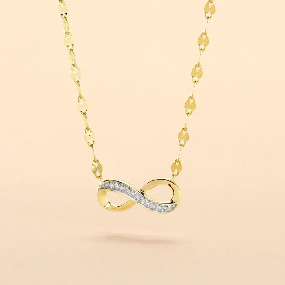 Collier Or Jaune 375/1000 Motif Infini Diamants Maille Lumina 40+2cm