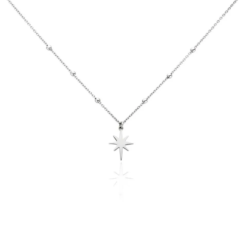 Collier Argent Blanc 925/1000 Motif étoile Maille Boules 45cm