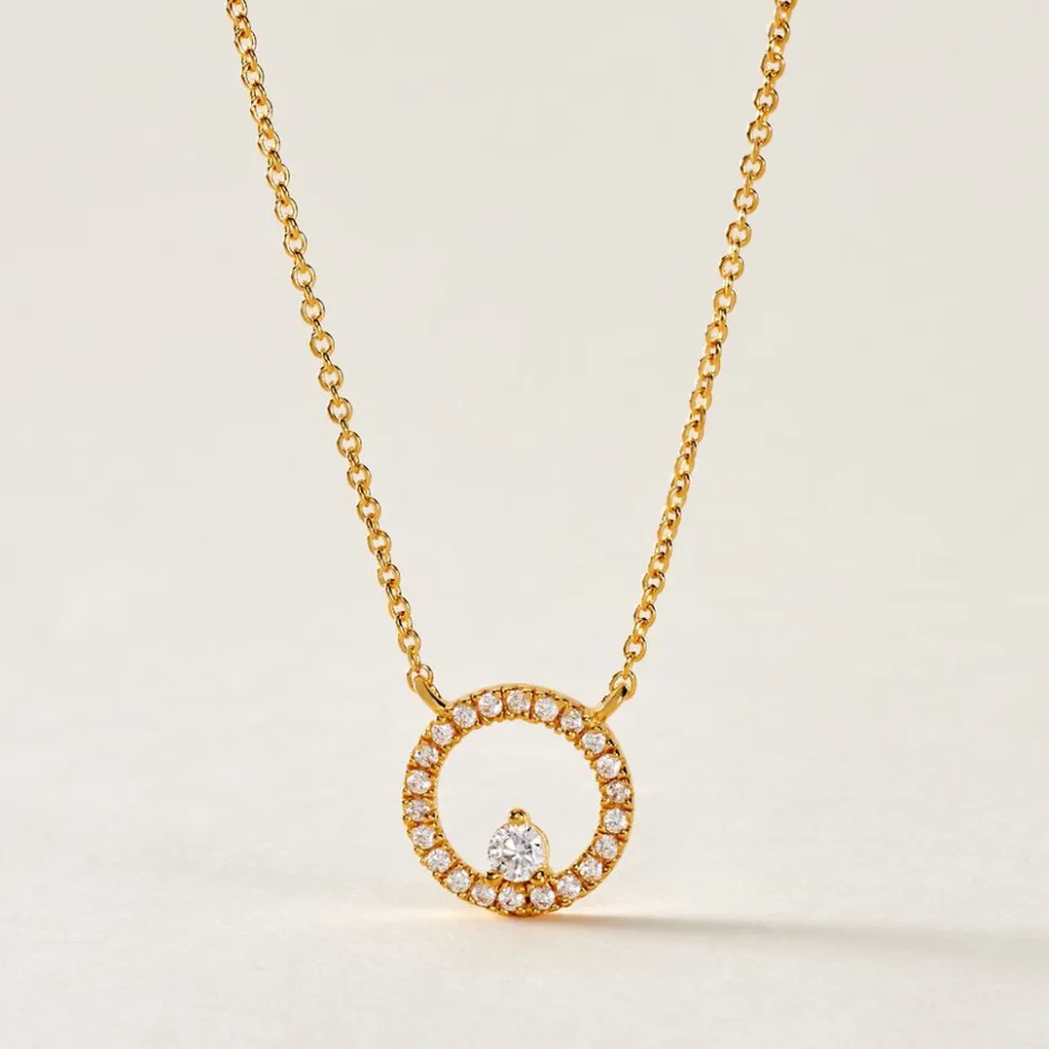 Collier Plaque Or Jaune Oxyde Central Cercle Pavage Oxydes De Zirconium Maille Forcat 45cm