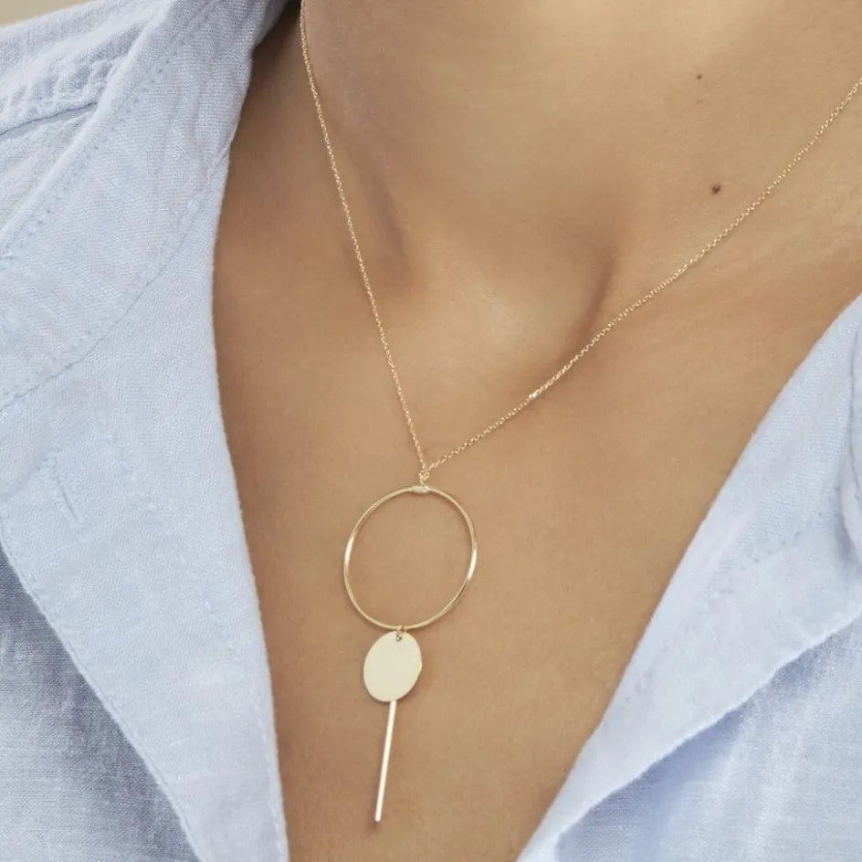 Collier Or Jaune 375/1000 Cercle Ajoure + Pampilles Cercle Plein Et Barrette Maille Jaseron 42cm