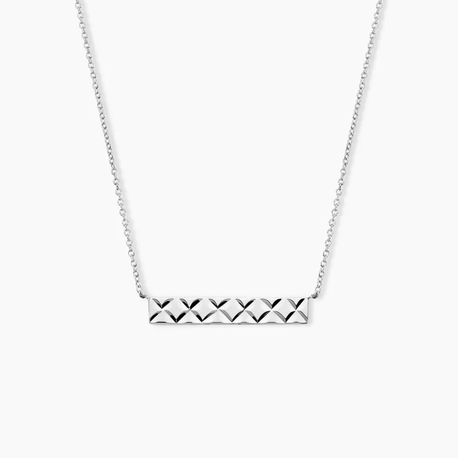 Collier Argent 925/1000 Barrette Diamantee Fleurs 45cm