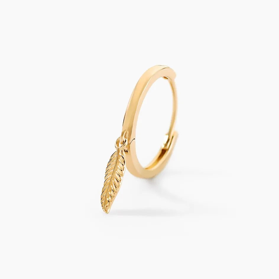 Creole Unitaire Or Jaune 375/1000 Fil Rond Pampille Plume Diametre 10mm