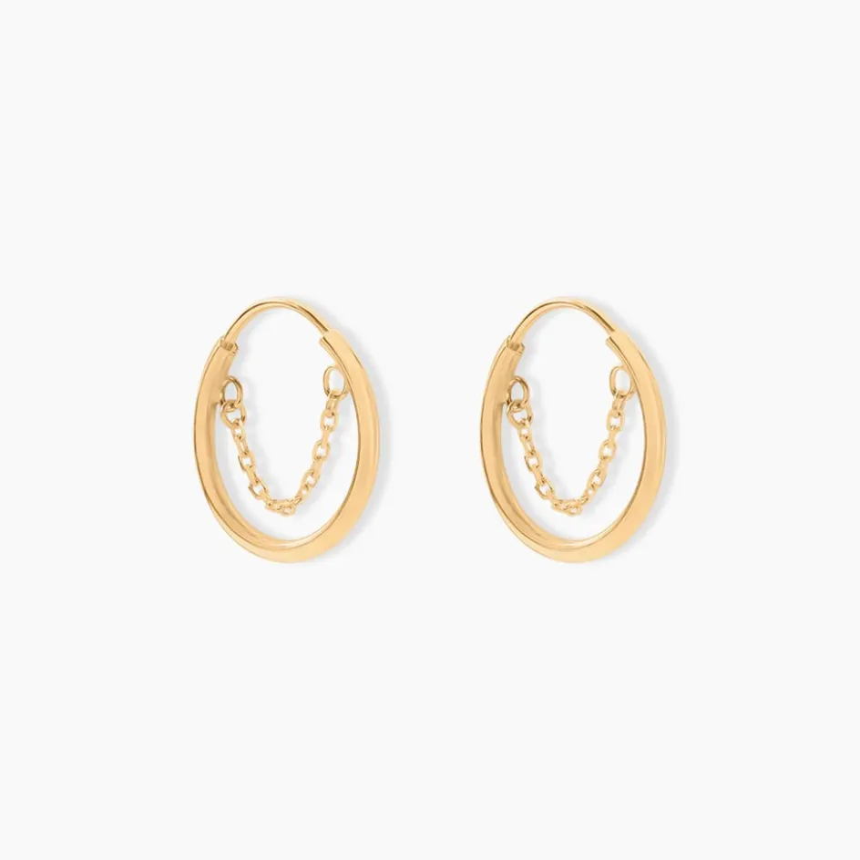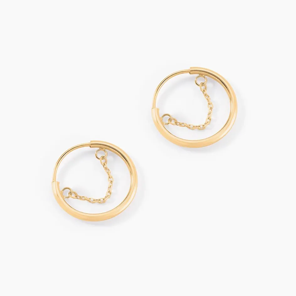 Creoles Pendantes Or Jaune 375/1000 Fil Rond Chaine Interieur Forcat Diametre 12mm
