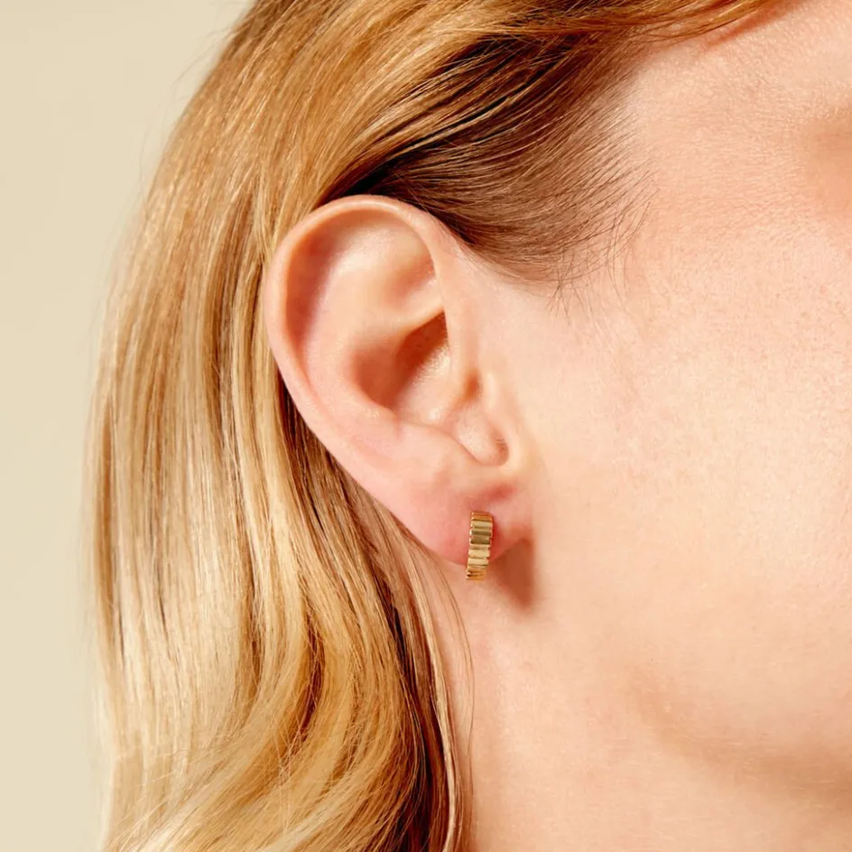 Créoles Or Jaune 375/1000 Striée Largeur De Fil 2Mm Diametre 7Mm