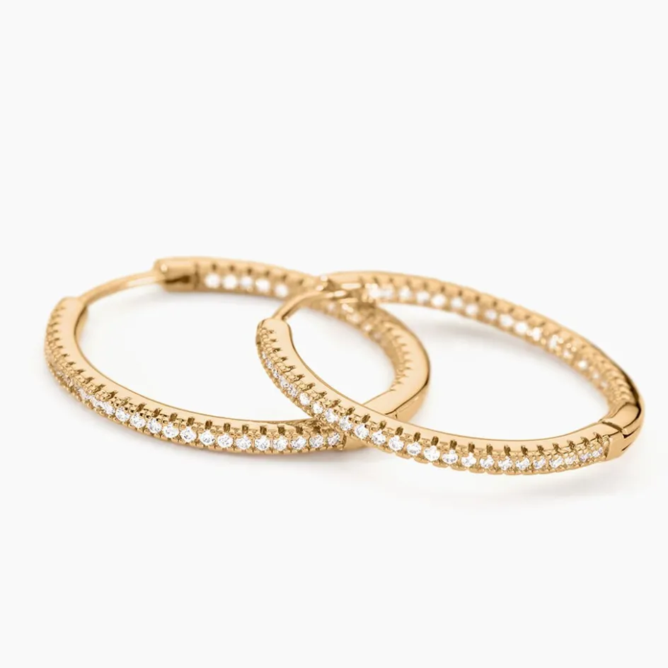 Creoles Plaqué Or Jaune Pavage Oxydes De Zirconium Exterieur Et Interieur Diametre 25mm