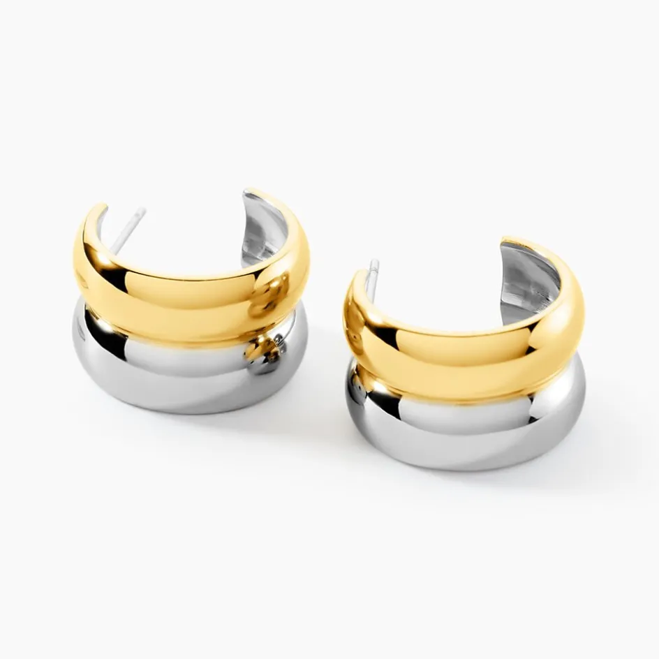 Créoles Acier Inoxydable Bicolore Bombees Double Rang Diametre 16Mm