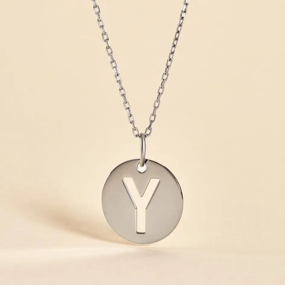 Pendentif Argent Blanc 925/1000 Pastille Lettre Y Diametre 18mm