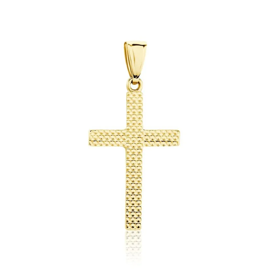 Pendentif Or Jaune 375/1000 Croix Religieuse Diamanté Longueur 3cm Et Largeur 1.6cm