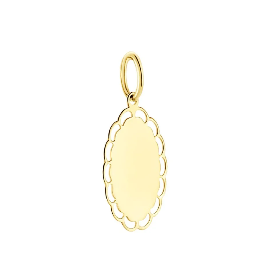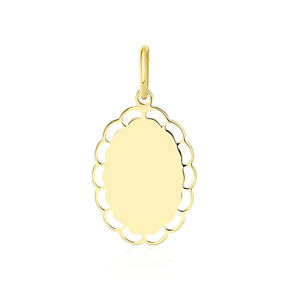 Pendentif Or Jaune 375/1000 Plaque Gravable Ovale Contour Dentele Ajoure