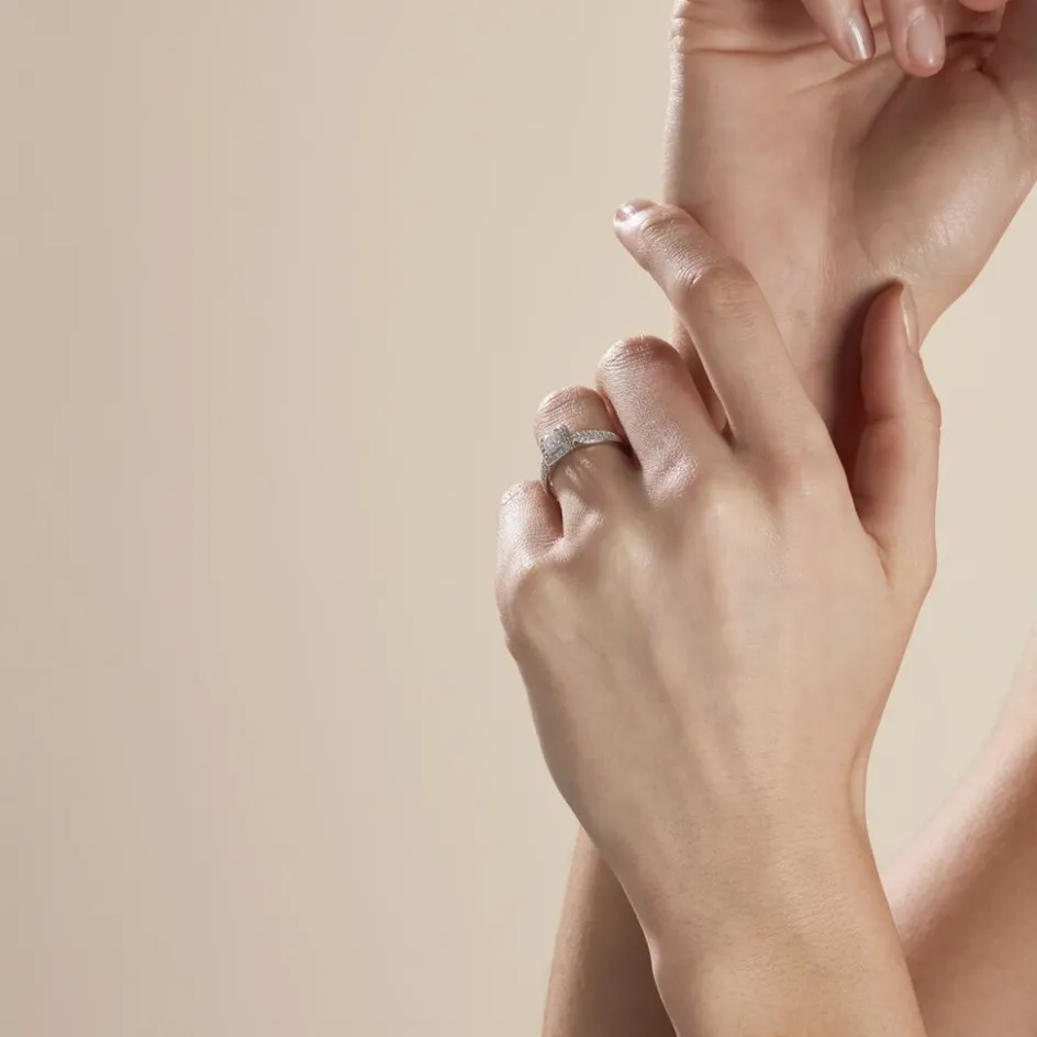 Solitaire Or Blanc 750/1000 Diamant Central Synthetique 0.50ct Taille Princesse Accompagne Diamants Synthetique Sertis Griffes