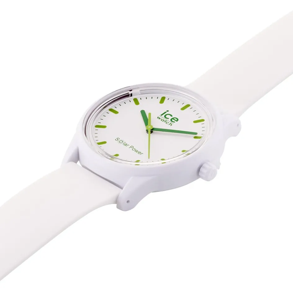 Montre Ice Watch Solar Power Plastique Blanc Ronde 43mm Fond Blanc Bracelet Silicone Blanc 017762