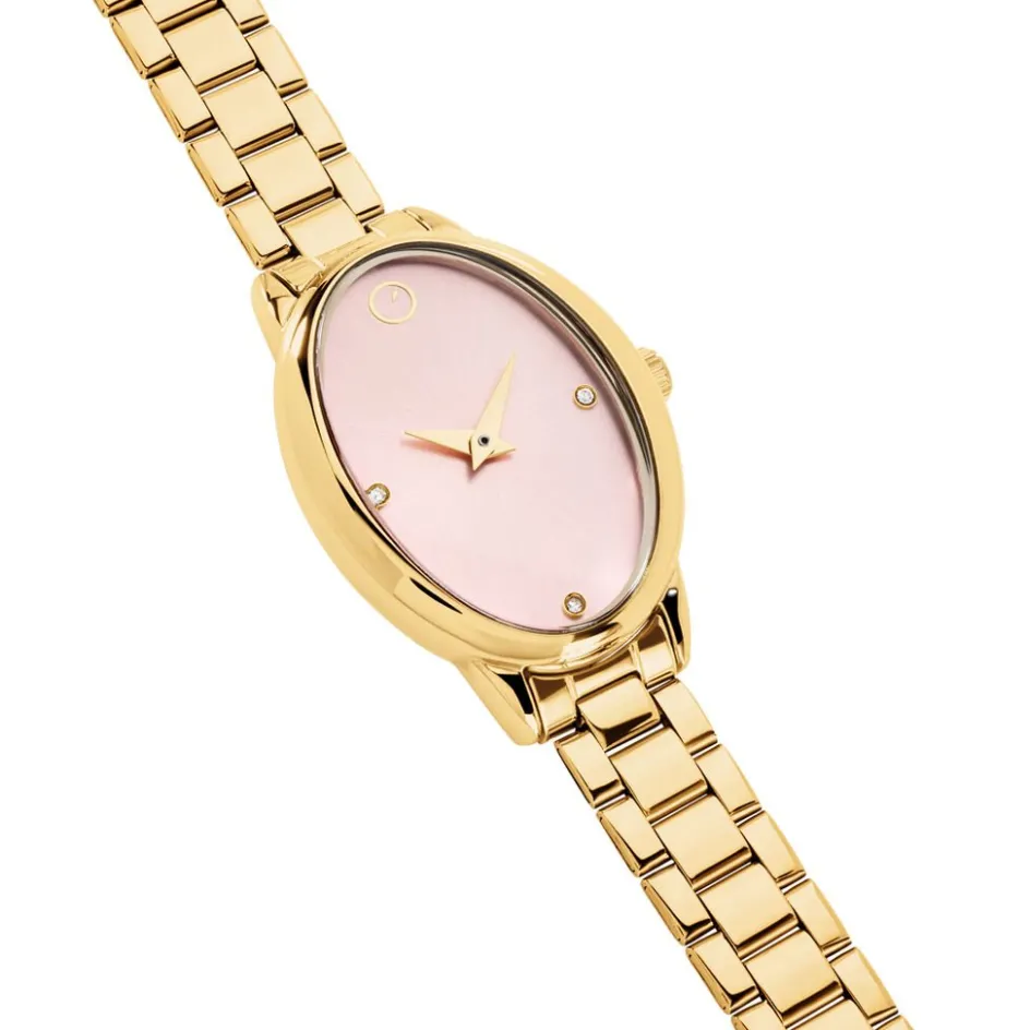 Montre O Watch Chic Alliage Dore Ovale Quartz 25mm Fond Rose Bracelet Acier Dore Ow.4322sa/01m